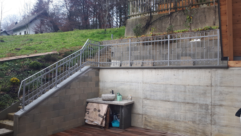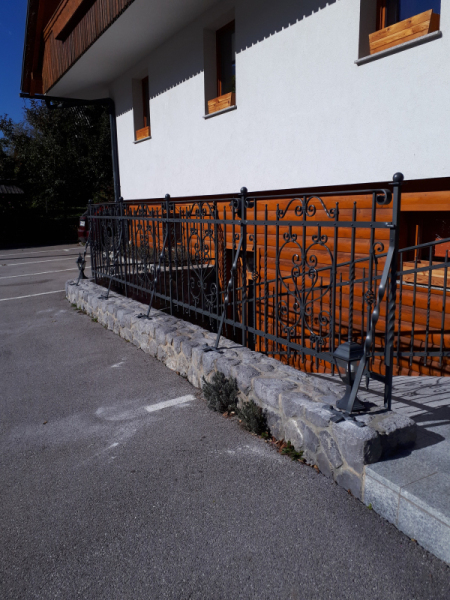 Izdelujemo kakovostne kovane ograje za balkone, terase, vrtove in druge prostore po meri. Naši izdelki so kombinacija ročne in strojne kovinske obdelave, kar zagotavlja natančnost, vzdržljivost in estetsko dovršen videz. Vsak vzorec v ograji je ročno oblikovan z natančnostjo tradicionalnega kovaškega znanja, končni izdelek pa je spojen s kovicami, kar mu daje edinstven značaj in trajno stabilnost. Vsaka ograja je galvansko zaščitena proti koroziji in po želji odbarvana po izbiri naročnika, kar zagotavlja dolgotrajno obstojnost in brezskrbno uporabo. Z našimi ograjami prostor pridobi eleganco, prefinjen slog in funkcionalno varnost, popolnoma prilagojeno vašim potrebam in arhitekturi objekta.